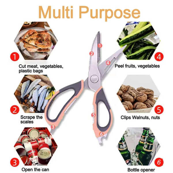 Haben Sie genug davon, ständig mit verschiedenen Messern, Schälern und Flaschenöffnern zu hantieren? Die ChefSecret 5-in-1 Multi-Küchenschere kombiniert zahlreiche Küchenutensilien in einem, was Ihre Effizienz, Bequemlichkeit und Genauigkeit erhöht. Egal ob Fleisch, Fisch, Gemüse oder Pizza – dieses Werkzeug erledigt alles mit Leichtigkeit.