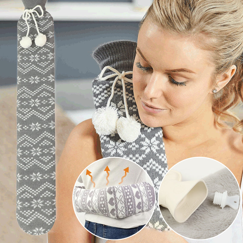 Eine vollständige Wärmflasche mit einem weichen Bezug