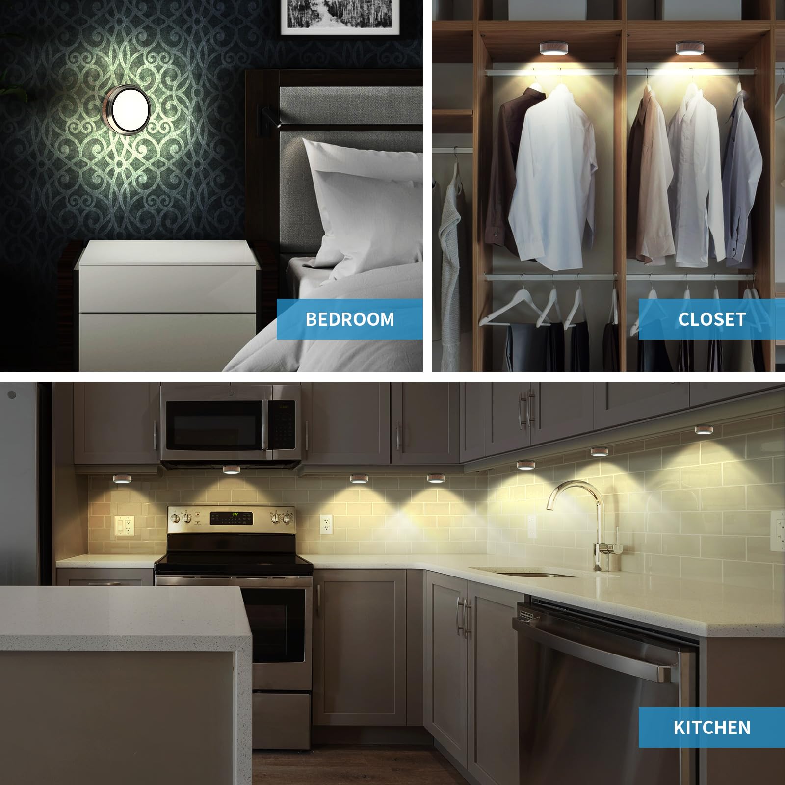 - **Helles und natürliches Licht**: Mit 7 hochwertigen LED-Perlen liefern diese Lichter mit einem Durchmesser von 3,12 Zoll doppelt so viel natürliches Licht im Vergleich zu regulären Puck-Lichtern. Das 4000K natürliche Weißlicht schafft eine einladende Atmosphäre in der Küche, in Schränken oder überall dort, wo Sie zusätzliches Licht benötigen.