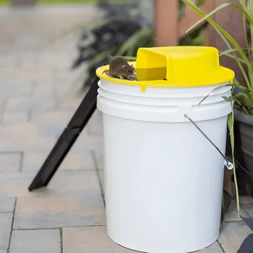 Dieses Produkt ist eine Falle für Mäuse und Ratten, die einen automatischen Kippmechanismus zur Fangmethoden nutzt. Die Falle ist so konzipiert, dass sie mit einem Standardbehälter (nicht enthalten) als Sammelbehälter verwendet wird. Das Design ist frei von giftigen Chemikalien oder gefährlichen Mechanismen und wurde mit Blick auf die Sicherheit von Kindern und Haustieren konstruiert.