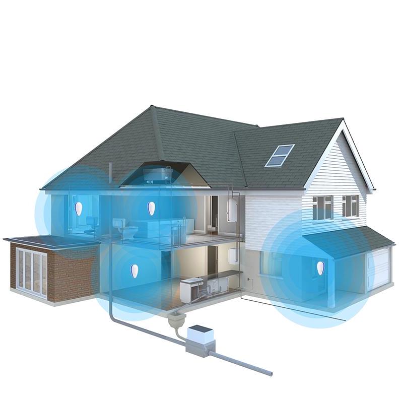 Für eine optimale Abdeckung empfehlen wir, in jedem Raum ein Gerät zu platzieren. Jedes Gerät deckt effektiv bis zu 60 Quadratmeter ab, daher ist die Gesamtzahl abhängig von der Größe und dem Layout Ihres Hauses.
