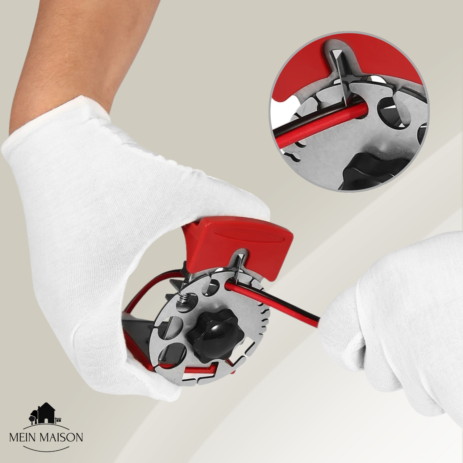 Haben Sie genug davon, Kabel zu schädigen oder sich beim Abisolieren zu verletzen? Dieses Werkzeug bietet die Lösung mit scharfen, einstellbaren Klingen, die Ihre Hände und Kabel schützen. Genießen Sie schnelleres, sicheres und sauberes Abisolieren für all Ihre Projekte.