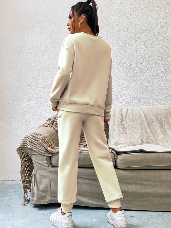 Dieses elegante Pullover- und Hosenset ist perfekt für Frauen, die Stil und Komfort kombinieren möchten. Der modische Pullover und der hochwertige Stoff machen es zu einem Must-Have in Ihrem Kleiderschrank. Egal, ob Sie zu Hause entspannen oder einen legeren Tag verbringen, dieses Set wird Sie mit seinem zeitlosen Charme ausstechen.