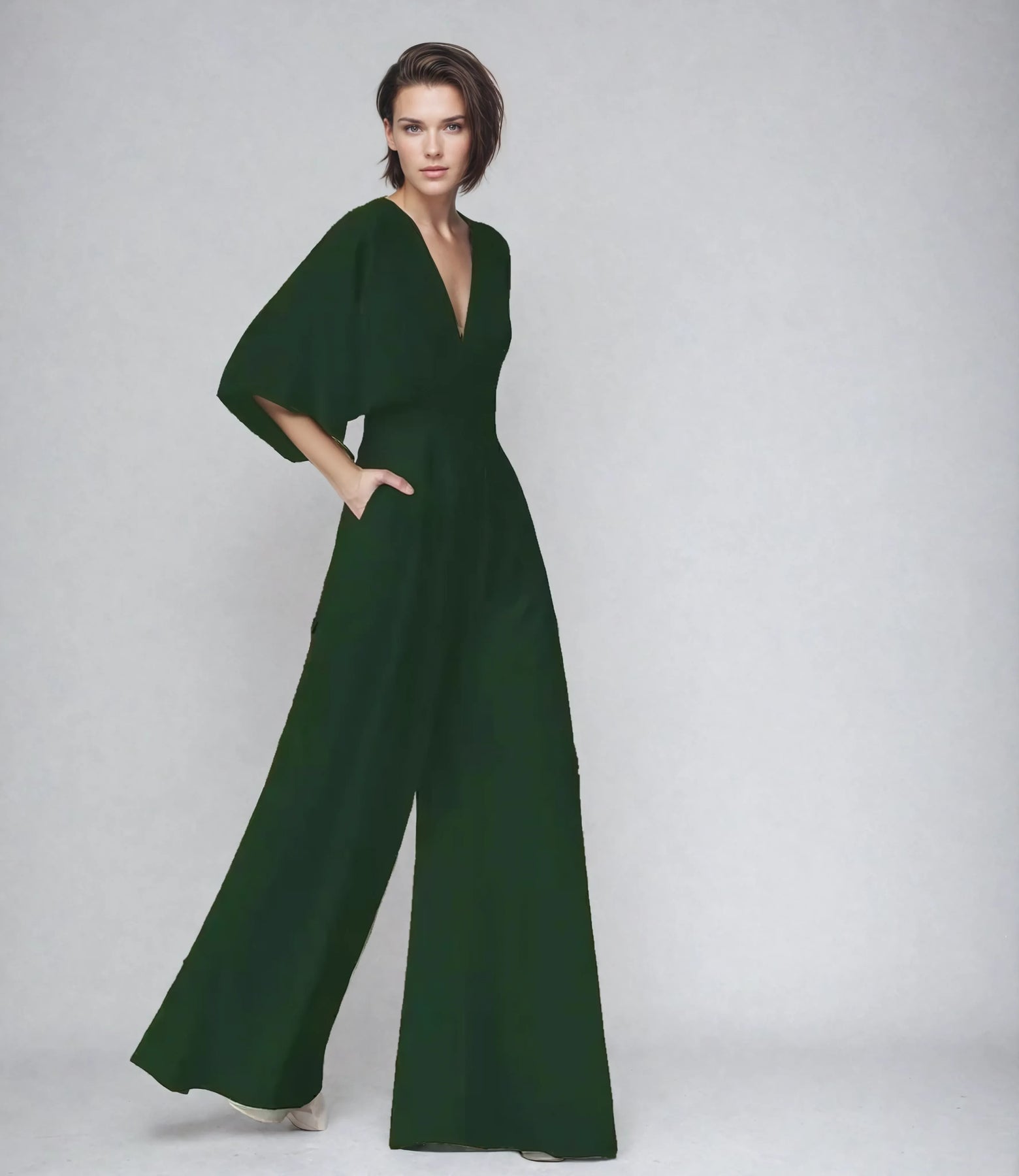 Der Julia Jumpsuit besticht durch seinen tiefen V-Ausschnitt, die weit geschnittenen, fließenden Hosenbeine und die sanft fallenden Ärmel, die eine edle, harmonische Silhouette schaffen. Die hochwertige Verarbeitung sorgt für angenehmen Tragekomfort, während der leicht betonte Taillenbereich eine feminine Form unterstreicht – ideal für besondere Anlässe, elegante Abende oder moderne City-Styles. Ein Must-have für Damen, die Stilbewusstsein, Eleganz und fließende Premium-Mode lieben.