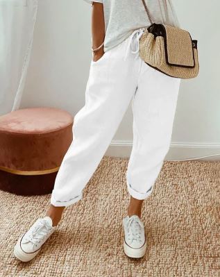 Erleben Sie unser zeitloses Outfit, bei dem Stil auf Komfort trifft! Tauchen Sie ein in die Welt von Rafina - Elegante Baumwollhosen - ein zeitloser Ausdruck von Freiheit. Diese Hose ist nicht nur ein modisches Statement, sondern auch ein Versprechen für Qualität und Komfort.