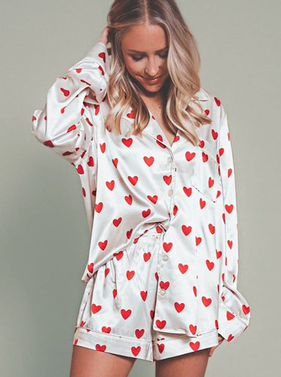 Mit dem Satin-Outfit "Zaira" fühlen Sie sich immer wohl und stilvoll, auch zu Hause. Dieses Outfit kombiniert einen weichen und luxuriösen Stoff mit einem niedlichen Druckdesign, perfekt für einen entspannten Tag zu Hause.